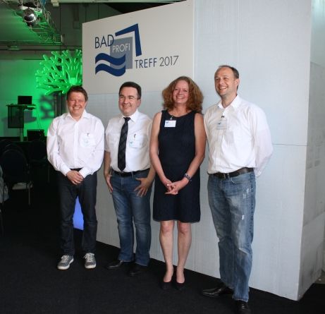 Sie alle freuen sich über einen gelungenen BAD-PROFI TREFF: v.l.n.r. Marco Lutz, Lux Elements, Markus Kohl, Platten-Kohl GmbH, Andrea Stark, Starkberaten, Andreas Donner, Lux Elements
