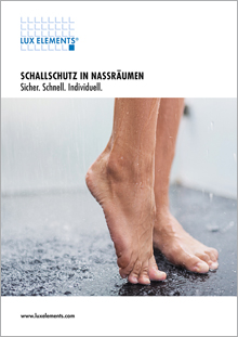 Wir betrachten immer das Ganze. Aus diesem Grund haben wir uns intensiv mit der Thematik „Schallschutz im Nassbereich" beschäftigt und eine neue Broschüre hierzu gestaltet. Diese gibt einen Überblick über die gängigen Normen und erklärt, welche LUX_ELEMENTS-Produkte beim Schallschutz im System beteiligt sind.