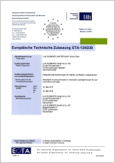 Als einem der ersten Unternehmen in Europa wurde LUX ELEMENTS vom deutschen Institut für Bautechnik (DIBt) im Mai die Zulassung ETA-13/0238 nach der ETAG 022, Teil 3 erteilt. Dieser hohe Sicherheitsnachweis bezieht sich auf einen Bausatz mit wasserdichten Platten für Wände und Böden zur Nassraumabdichtung unter der Handelsbezeichnung LUX ELEMENTS®- WATERTIGHT SOLUTION.