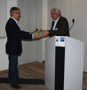 Rolf Longrée bedankt sich bei Per Öberg aus Schweden für den anschaulichen Vortrag über den Ausbau eines Spas in einem Hotel in Stockholm. Für die Vorträge am Nachmittag hatte die benachbarte IHK ihre Räume zur Verfügung gestellt.