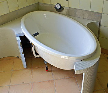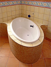 Die fertig montierte Wannenverkleidung nach der Verfliesung.