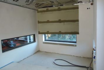 Umsetzung – Der insgesamt 18 m² große Raum wurde komplett neu aufgebaut, die langen rechteckigen Fenster neu eingebaut.