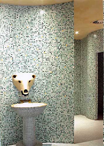 Die Verfliesung erfolgte direkt auf den von Lux Elements vorgefertigten Rundwandelementen.
