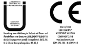 Für das Produkt LUX ELEMENTS®-ELEMENT-VK wurde mit Wirkung zum 19.02.2008 von dem Institut für textile Bau- und Umwelttechnik (tBU) das Prüfzeugnis Nr. P-AB/20802/06-2008 erteilt.