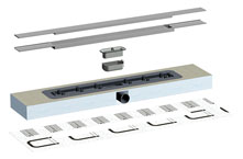 Bsp. TUB-LINE V RT 1800/200 (850)Verlängerte Bodenablaufrinneinklusive Unterbauelement und Dichtmanschette