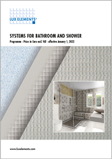 More products, improved structure: The new 2022 product brochure "Systems for bathroom and shower" from Lux Elements offers just that. Those who are familiar with the "Systems for bathroom and wellness" brochure from previous years will recognise the sections "Bathroom constructions", "Bathroom design" and "Shower bases". However, the "Shower bases" section has been renamed "Showers" and restructured according to areas of application and dimensions: