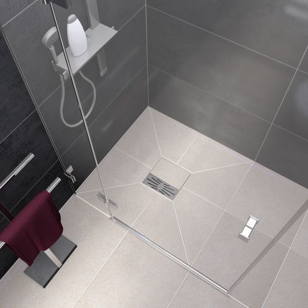 Since January 2015 Lux Elements offers the innovative product TUB-PUMP in various dimensions in the product group for flush with the floor showers. These are tileable shower bases made of hard foam support material with a sealed-in floor drain pump.