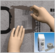 Seal the dowel pin heads using a small piece of sealing tape DRY-DBV and DRY-ASK. DRY-ASK is applied using a brush or spatula. Gluing of the cut-to-size sealing tape takes place using DRY-ASK. Then level out using DRY-ASK.