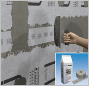 Sealing of the joints using sealing tape DRY-DBV and DRY-ASK. DRY-ASK is applied using a brush or spatula. Gluing of the sealing tape takes place using DRY-ASK. In the second step the joint is levelled out using DRY-ASK.