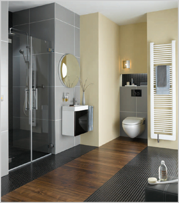 The construction panel as the substrate for wall, floor and constructions requires an attractive surface. Only then does it have the individual design that can hardly be realised so quickly, easily and cleanly by any other building material combination. The individual form due to the substrate ELEMENT and the surface design by ceramics or plasters turn any bathroom into something unique.