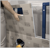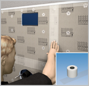 Planking can be done in full room height or with a shelf above the installations. ELEMENT-EL 20 is suitable for the top covering. This is glued with COL-MK and fixed using FIX-S 35 and a suitable screw.