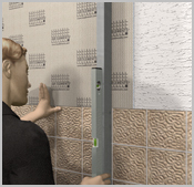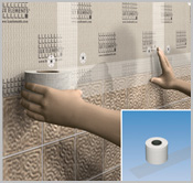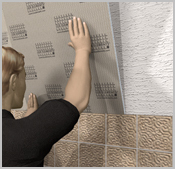 Position the ELEMENT construction panels at the top edge of the old tiling (knock off obstructive plaster clots before beginning, if necessary) and press to the wall.
