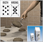 When using ELEMENT-EL ≥ 6 mm, apply the fixing adhesive COL-AK pointwise on one side using dots of adhesive (8 – 10 pcs. per m2). Before applying adhesive pre-pierce the holes for the hammer fix plugs FIX-FID or FIX-KSD.