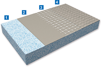 1. Polystyrene hard-foam 2. Contact mortar layert 3. Glass-fibre fabric 4. Coating mortar layer