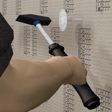 Plastic hammer fixing plug for fixing hard foam support elements to an interior wall, drill with 8 mm drill. Anchoring depth 30–50 mm.