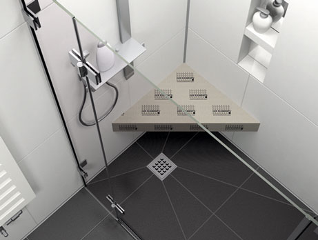 Prefabricated bench seats for bathroom and shower areas. Suitable for corners and niches