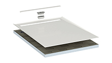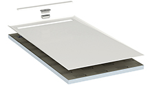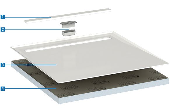 4. Shower base element 30/45, Hard foam support material made of LUX ELEMENTS®-FOAM with dual-sided mortar coating and glass fibre fabric. 4-sided gradient with sealing on the upper side.