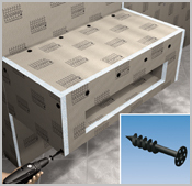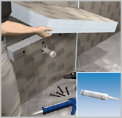Coller la butée murale découpée dans un reste de matériau avec COL-PU ou COL-AK (en fonction du support). La fixer en outre à l’aide de chevilles appropriées. Coller le panneau de recouvrement en ELEMENT-EL 100 avec COL-PU et le fixer avec FIX-SD 130.