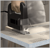 Découper au mesure l’habillage frontal en ELEMENT-EL 30 en créant une découpe à l’intérieur.