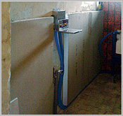 Préparation d’un mur destiné à la fixation d’une installation sanitaire.