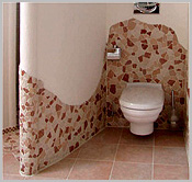 Développement de mur arrondi en tant que paroi de séparation dans la salle de bains.