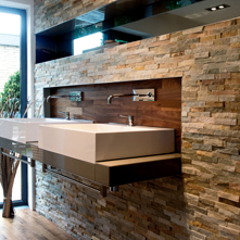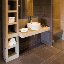 De multiples réalisations sont possibles avec les panneaux de la gamme LUX ELEMENTS®-ELEMENT comme l’aménagement complet d’une salle de bain.