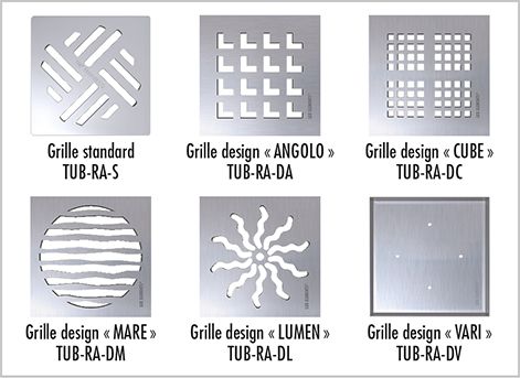 Ce système d'écoulement permet de combiner différents siphons de sol verticaux ou horizontaux avec huit variantes de grilles (y compris le support de grille).