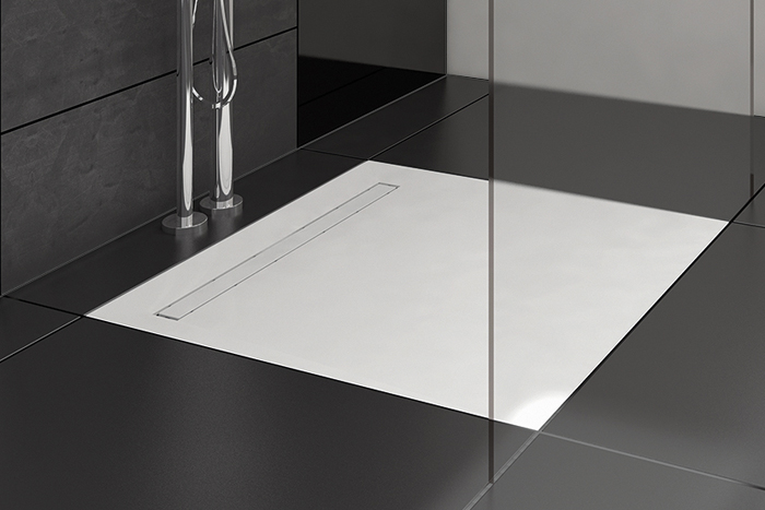 TUB-LINE... – Receveurs de douche, carré ou rectangulaire avec écoulement en ligne intégré et étanchéifié.