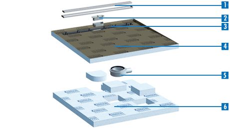 Les receveurs de douche à fleur de sol dans toutes les dimensions sont disponibles avec un kit complets comprenant les accessoires de montage correspondants.