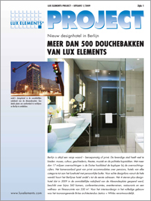 560 met de vloer gelijkgewerkte douches voor een Berlijns designhotel. De douchebakken van LUX ELEMENTS passen bij de vlakke opbouwhoogte van de dubbele vloerconstructie met cementdeklaag, zijn economisch aantrekkelijk en werden individueel op maat vervaardigd.