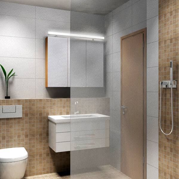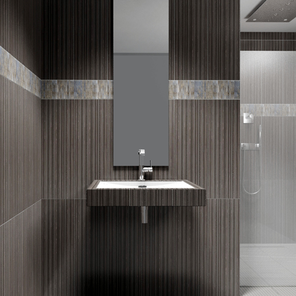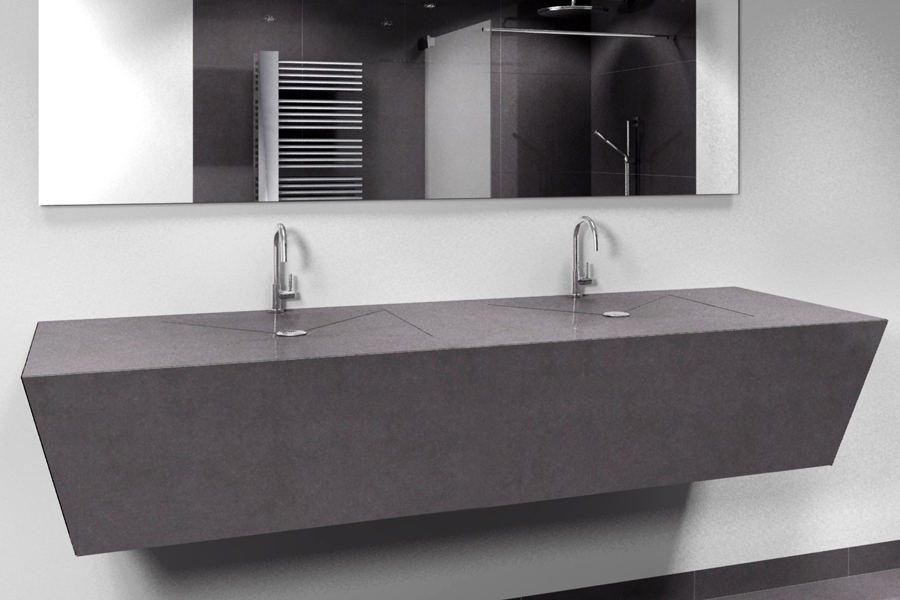 LAVADO-FLOAT biedt badkamerplanners en –gebruikers de mogelijk - heid, de wastafel door de combinatie van grootformaat tegels, natuursteen, mozaïek en pleister volgens eigen wensen vorm te geven.